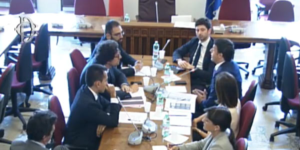 Nella sala della terza commissione Esteri della Camera, una delegazione del Movimento 5 stelle, composta da Di Maio, Toninelli, Brescia e Buccarella si incontra con una delegazione del Partito Democratico composta da Zanda, Speranza, Serracchiani e Guerini