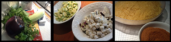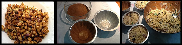 Tagliate a dadini la melanzana e le zucchine e friggetele. Spezzate i capellini e tostate il pangrattato.