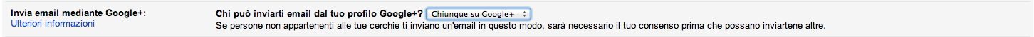 Per disattivare l’opzione, basterà recarsi sulle impostazioni di Gmail e accanto la sezione “Invia email mediante Google+” selezionare “Nessuno”: