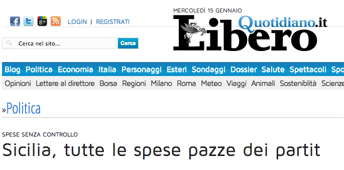 Le tanto citate “spese pazze” e senza controllo. Libero, spesso critico nei confronti della Sicilia e dei casi di malapolitica, dà grande spazio ma dimentica una “i”