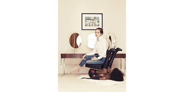 L’immagine ritrae la stesa Daria Zhukova poggiata, sembra anche con grande naturalezza, su una “poltrona di design” la cui seduta è legata ad una donna di colore vestita in con i soli stivali di pelle, slip e guanti.