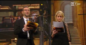 21:41 Il ritorno dallo spot pubblicitario è aperto dalla lettura di un testo sulla “bellezza” dai due conduttori del Festival. “Bello è quando un politico dice la verità anche quando fa perdere i voti”.
