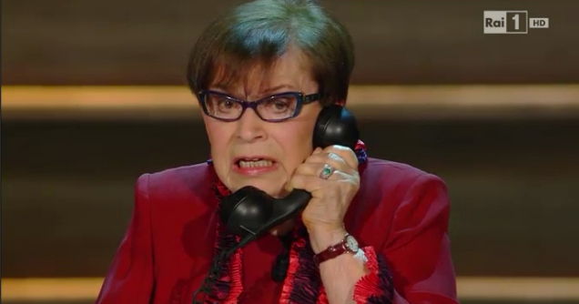 22:21 Arriva sul palco anche Luciana che recita una telefonata con la sua mamma senza lasciare spazio alle lezioni di dizione e mostrando tutto il suo accento piemontese. “No quest’anno non cantiamo du du du da da da, forse viene Berlusconi a cantare Dudu”. Fabio Fazio ringrazia Franca Valeri per la sua presenza sul palco “Sai Fabio è dal primo Sanremo che lo vedo, ho cominciato con la prima Nilla Pizzi” racconta l’attrice. “io non ho una canzone del cuore – spiega – per me la musica è l’opera”. L’Ariston ringrazia con un lungo e caloroso applauso. GUARDA IL VIDEO DI FRANCA VALERI A SANREMO