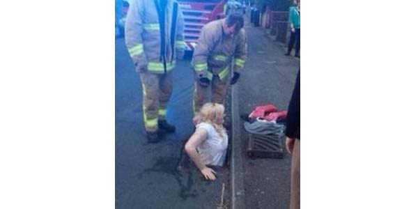 Cosa non si fa per un iphone. Ella-Anne Birchenough, 16 anni, a Dover nel Regno Unito, ha fatto cadere il suo cellulare e per recuperarlo si è infilata dentro un tombino ed è rimasta incastrata.