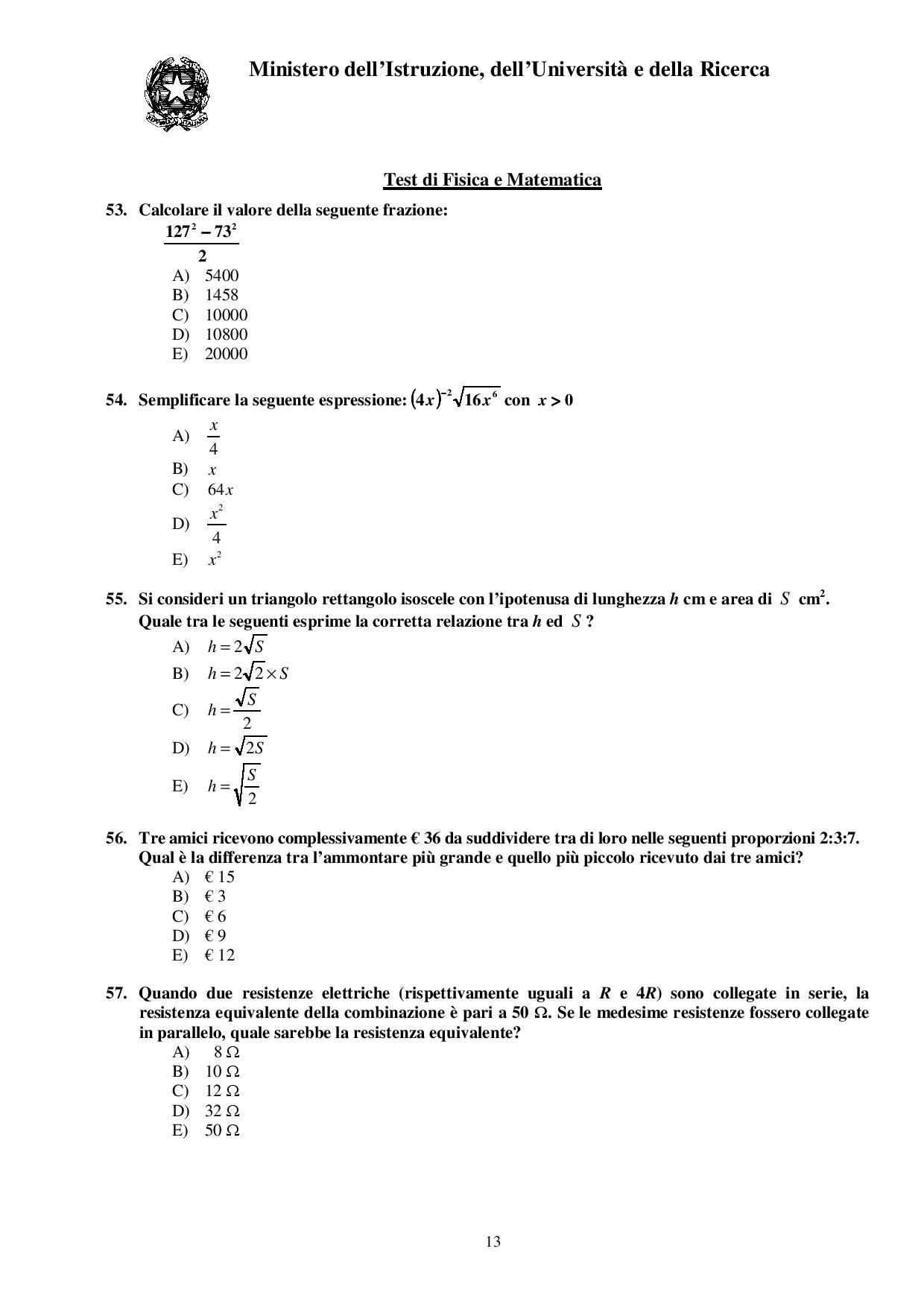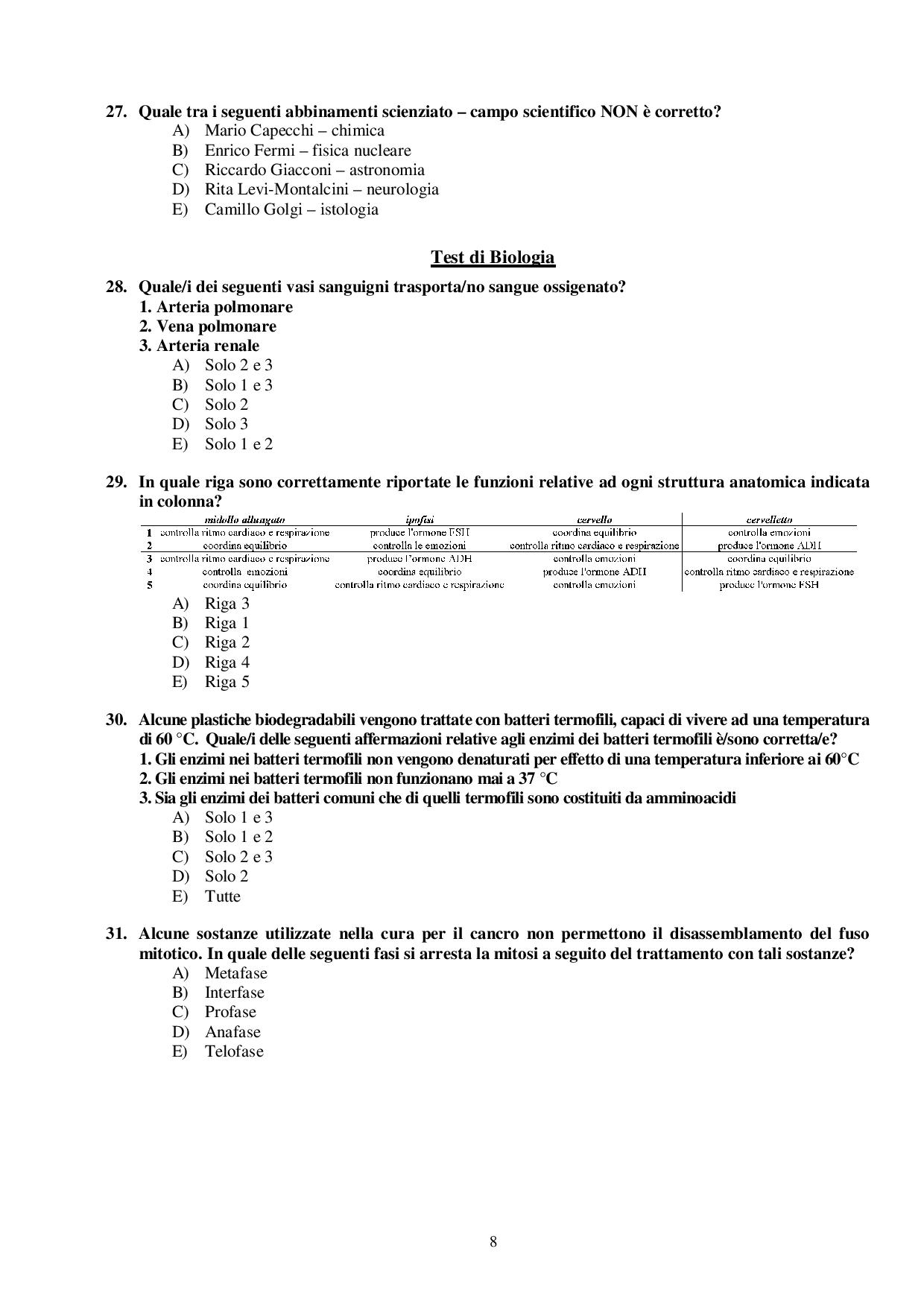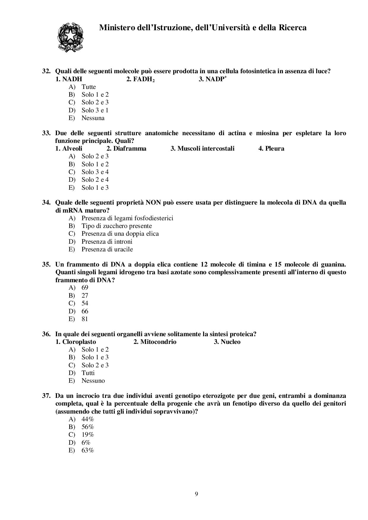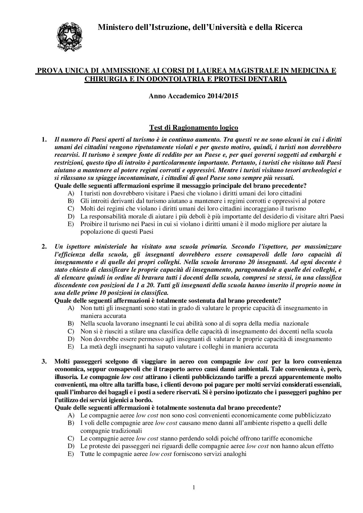 È stata pubblicata la copia corretta della prova di Medicina e Chirurgia e Odontoiatria e Protesi Dentaria che si è tenuta oggi, 8 aprile 2014. Ecco tutte le risposte contenute nel documento diffuso dal Miur.