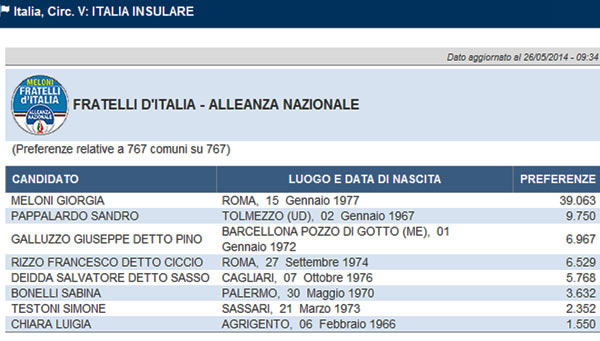 Europee 2014, ecco tutte le preferenze, candidato per candidato, di Fratelli d’Italia nella circoscrizione Isole.