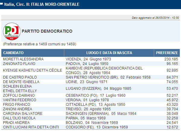 Europee 2014, ecco tutte le preferenze, candidato per candidato, del Partito Democratico nella circoscrizione Nord Est.