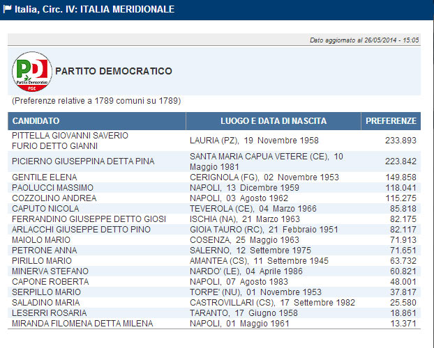 » Elezioni Europee 2014 » Europee 2014, le preferenze del Partito Democratico nella circoscrizione Sud