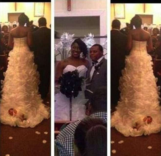 L’abito creato da Vera Wang, una famosa stilista newyorkese, era stato disegnato appositamente con una cucitura che contenesse la bambina, “in modo da essere ‘coperta’ da Cristo”, come ha affermato il marito e padre Johnathan Brooks.