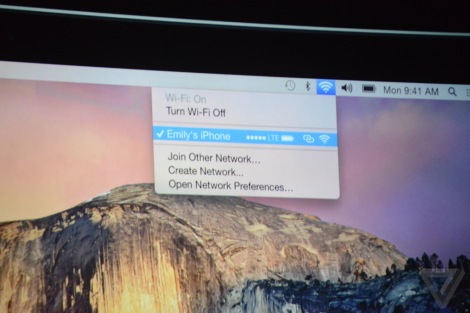 - – Handoff: una quasi completa coesistenza tra iOS e OS X, che permette ad esempio di vedere le informazioni del proprio iPhone (Sms, livello di batteria) sul proprio Mac o sul proprio iPad, permettendo persino di rispondere ed effettuare chiamate dal proprio computer o tablet anche se l’iPhone si trova in un’altra stanza.