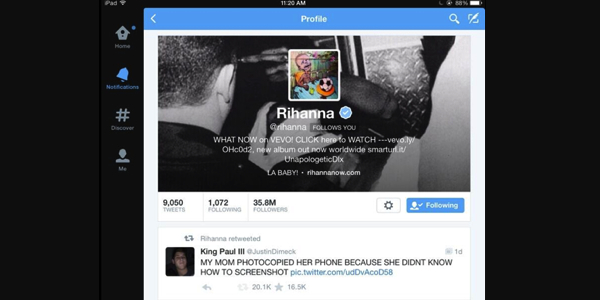 Il figlio è ovviamente corso a condividere sul social network la foto, che è stata parecchio apprezzata dagli altri utenti visti i 64 mila retweet. Il cinguettìo è diventato così virale, che persino Rihanna l’ha condiviso tramite il proprio profilo.