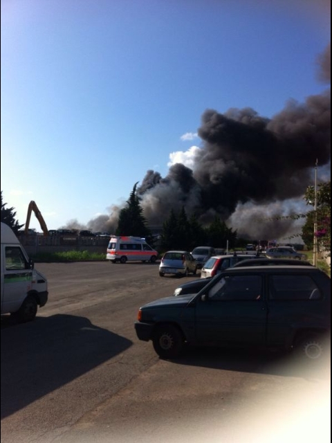 Stando alle prime ricostruzioni una bombola di gas sarebbe esplosa all’interno del deposito della ditta di autodemolizione Cannone, e il fuoco si è poi propagato nello stabilimento Bri Ecologica, che invece è impegnato nelle bonifiche ambientali. Al lavoro vigili del fuoco e polizia.