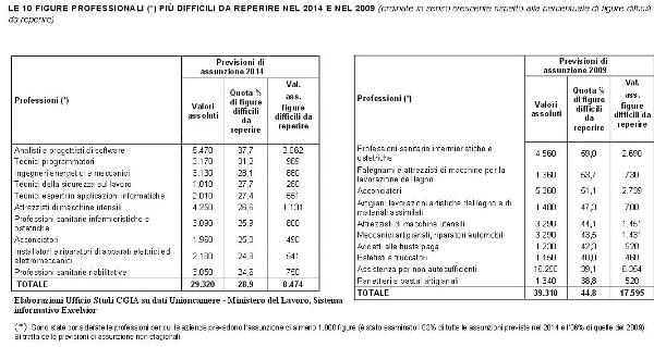 Da un’analisi dell’indagine periodica effettuata da Unioncamere e ministero del Lavoro su un campione qualificato di imprenditori italiani emerge che le previsioni di assunzione per l’anno in corso delle dieci figure professionali più difficili da reperire sul mercato del lavoro creeranno 29mila nuovi posti di lavoro.