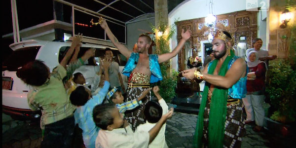 Ma prima i viaggiatori devono andare in una sartoria e farsi vestire e truccare, solo quando impareranno la danza balleranno davanti a Costantino e una grande maestra di ballo indonesiana. Eva Grimaldi della Cougar subito si lamenta di aver perso il suo punto vita! Angelina delle Cattive non le manda a dire: “Sembriamo delle battone ridicole!”. Molto più a proprio agio gli uomini, anche se Emiliano degli Sposini non vede l’ora di terminare la missione!