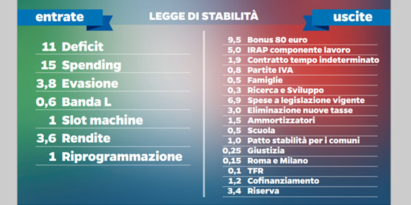 La Legge di Stabilità è una manovra finanziaria di 36 miliardi di euro. Di seguito i punti principali della legge: