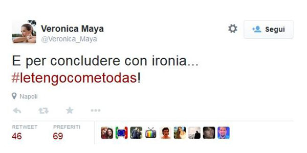 Veronica comunque fa sapere che “Al di là di ogni singola opinione mi dispiace davvero tanto per l’imbarazzo causato dal fuori programma, è stato un incidente non voluto”. Ringrazia Carlo Conti per la “prontezza” dell’intervento (ovvero dopo che già si era visto tutto quello che c’era da vedere) e alla fine si lancia in un commento ironico che chiude definitivamente la vicenda: #letengocometodas!