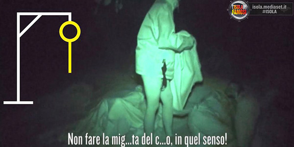 22.23 – Katharina fa il suo ingresso in Palapa. Cristina si presenta: “Spero tu stavi scherzando…” ma Katharina le risponde secca: “Veramente no…”. Prima di lasciare il marito dice alla Buccino: “Sono contenta che ci sia qualcuno che si prende cura di lui, ma magari potresti farlo un po’ di meno…”. Cristina continua a fare la “finta tonta” e ribadisce che non vede nulla di male nel suo atteggiamento (forse è l’unica in tutta Italia).