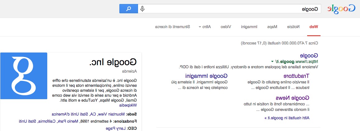 Com.google, l’”easter egg” come pesce d’aprile del colosso di Mountain View in occasione del primo del mese: entrando sul sito in questione infatti, le pagine del motore di ricerca vengono visualizzate tutte con un effetto a specchio, proprio come lo è lo stesso url. L’altra sorpresa di Google riguarda la possibilità di giocare al celebre gioco degli anni ’80 Pac Man tra le vie di qualsiasi città del mondo tramite il loro servizio Maps.