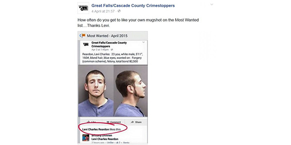 Era ricercato per furto e falsificazione nella Contea di Cascade (Montana) ma quando ha visto la sua foto sulla pagina Facebook di i Crimestoppers, organizzazione non-profit legata al Dipartimento di Polizia non ha saputo resistere e ha cliccato “Mi piace”.