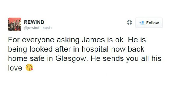 Il personale di bordo è intervenuto in suo aiuto e James in persona ha rassicurato le sue fan sul suo stato di salute.