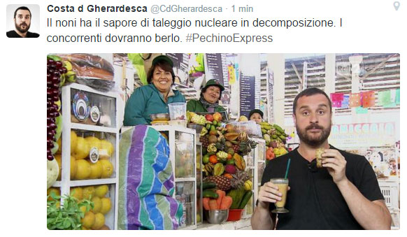 21.31 – Una volta arrivati al mercato, i concorrenti dovranno bere un bicchiere di succo di noni, che non è particolarmente gustoso…