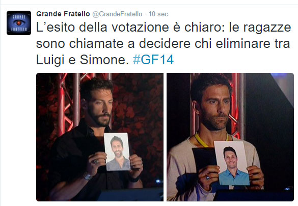 Ma non è stata l’unica ad uscire dalla Casa: il Grande Fratello ha pensato di eliminare uno tra gli uomini, dato che le donne avevano subito parecchie perdite. Ci hanno provato in tutti i modi, il pubblico lo aveva finora sempre salvato ma alla fine ci sono riusciti: i ragazzi sono riusciti ad eliminare Luigi. Ma il Grande Fratello ha annunciato una nuova fase del programma: le scelte prese in Casa devono comunque passare del giudizio del pubblico quindi Luigi passerà la settimana in garage.