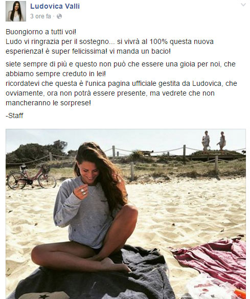 Ludo vi ringrazia per il sostegno… si vivrà al 100% questa nuova esperienza! è super felicissima! vi manda un bacio!siete sempre di più e questo non può che essere una gioia per noi, che abbiamo sempre creduto in lei!