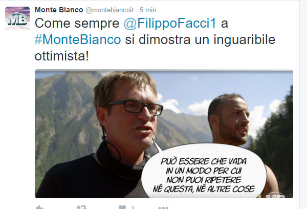23.31 – “Il tempo della solidarietà e della squadra si è rotto” commenta Filippo. “Adesso ho una missione impedire che qualcun altro arrivi alla vetta del Monte Bianco”.