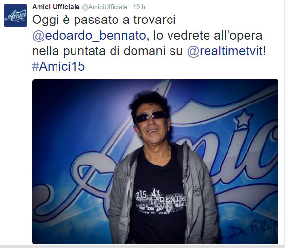 Ultimo appuntamento con il quotidiano di Amici su Real Time prima delle vacanze di Natale. In questa puntata i ragazzi riceveranno un’altra importante sorpresa: dopo Luca Carboni, sarà la volta di Edoardo Bennato, come anticipato dai social della trasmissione.