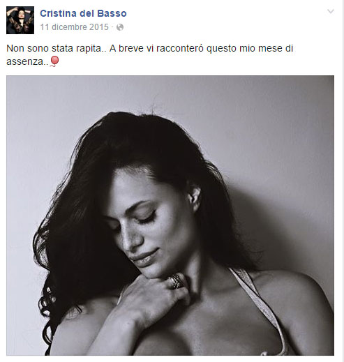 Cristina Del Basso è tornata. A poco meno di tre mesi dalla nascita del suo Riccardo, l’ex gieffina si sfoga sui social con un lungo, tenero e malinconico post, in cui spiega che ormai l’unico uomo della sua vita è il suo piccolo ed è ufficialmente single.