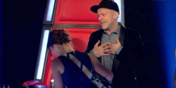 22.45 – Sul palco di The Voice viene calata una tenda: il nuovo talento non lo vede nessuno. L’unica che si gira è Dolcenera. Ad uscire allo scoperto è Giorgia Alò: “Ma sei una donna??”, chiede incredula Dolcenera. “Per forza una come lei doveva capitare a me”.