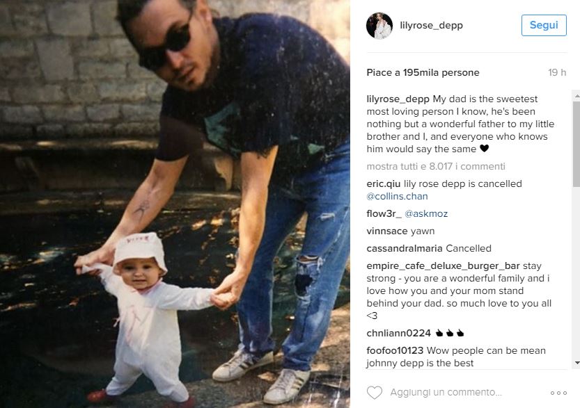 Anche la figlia Lily Rose ha preso le difese del padre, pubblicando uno scatto su Instagram. “Mio padre è la persona più dolce che io conosca, è stato un meraviglioso papà per me e il mio fratellino e chiunque lo conosca dirà la stessa cosa”. Amber Heard, nel frattempo, ha chiesto un ordine restrittivo nei confronti dell’ex marito per violenza domestica, definendolo “fisicamente e verbalmente violento”.