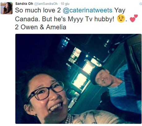 In un altro scatto insieme a Kevin McKeed tagga Caterina Scorsone, che nei nuovi episodi di Grey’s Anatomy è la nuova fidanzata di Owen e scrive: “Tanto amore per @caterinatweets, ma lui è il MIO maritino televisivo!”, rivendicando la sua “proprietà”.