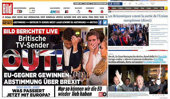 “Out” è la parola che più si legge sui quotidiani europei e non solo. Mentre su Twitter gli utenti hanno scelto di prenderla sul ridere: “Cosa vi aspettavate da un popolo che non si fa il bidet?”, ha scritto qualcuno; “Che vi aspettavate da chi beve un capuccino alle 10 di sera?”, ribatte un altro utente. Altri invece hanno deciso di boicottare la serie tv di enorme successo Downtown Abbey.