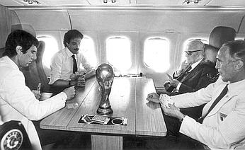 Questa è, insieme alla corsa di Tardelli, l’immagine simbolo di quel mondiale vinto dall’Italia, la partita di scopone più famosa della storia italiana: sulla sinistra il duo Zoff-Causio (i vincitori), sulla destra la coppia Bearzot-Pertini. Una scena epica e surreale, con la coppa del mondo che brilla sul tavolino dell’aereo di linea DC9, atterrato poi a Malpensa.