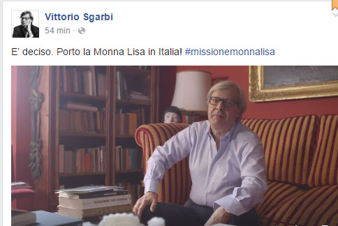 “Come sapete uno dei più notevoli capolavori italiani, la Monna Lisa, è in Francia. È arrivato il momento di farla rientrare in Italia. Ho parlato con i francesi e ho preso accordi perché ritorni da noi ciò che è nostro. Perché le cose bisogna saperle chiedere. Io so farlo…”, dice il critico d’arte che chiude il video con un insulto rivolto non si sa bene a chi, accusati di disturbare mentre lui stava girando il video.