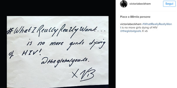 L’idea sta piacendo molto e sta riscuotendo successo anche tra i vip. Non a caso una delle prime a sostenere l’iniziativa con l’hashtag è stata Victoria Beckham: il suo augurio è che le donne non muoiano più a causa dell’HIV.