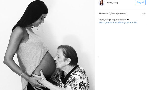 Nella didascalia Federica scrive “3 generazioni” ma a molti il dubbio è sorto: “Scusate, ma non sono quattro?”. E in effetti sì: anche se manca il genitore della Nargi (non sappiamo se la nonna della foto sia materna o paterna), dalla nonna al bisnipote le generazioni sono quattro.