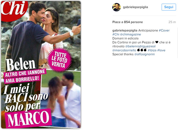 Il gossip di questa estate continua a insistere su Belen Rodriguez e Marco Borriello. Il settimanale “Chi” li mette in copertina del nuovo numero e mostra la foto del loro “bacio”.