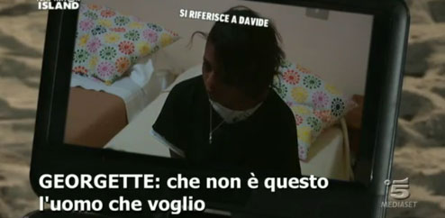22.41 – Davide però dimentica presto i video visti al falò grazie alla vicinanza di Karina… Georgette invece piange e sembra non preoccuparsi dei sentimenti che possa provare Claudio.