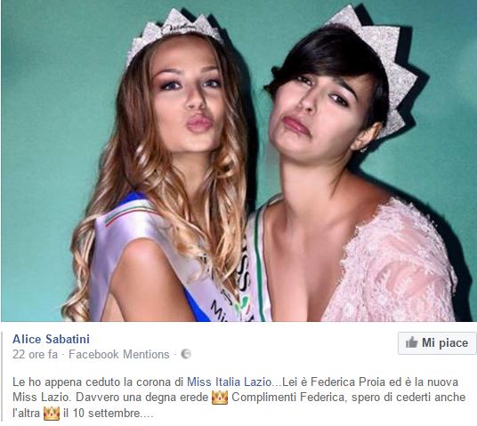 All’amore per il ballo Federica coniuga la passione per la recitazione e sogna di diventare una brava attrice. A cederle la corona è stata Alice Sabatini, eletta Miss Italia nel settembre scorso ed ex Miss Lazio.