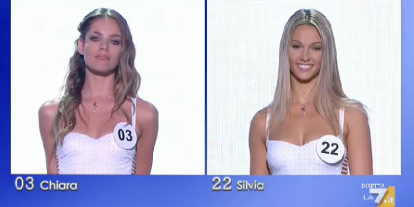 23.40 – Penultimo confronto tra la n.03 Chiara Esposito e la n.22 Silvia Lavarini. Per Silvia Miss Italia continua per Chiara finisce qui.