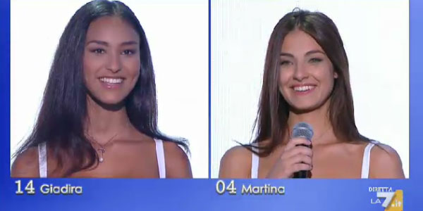 23.44 – Ultimo faccia a faccia tra la n.14 Giadira Mohamed Ismail e la n.04 Martina Motta. Per Giadira Miss Italia continua mentre per Martina finisce qui.