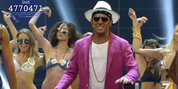 22.11 – Sul palco di Miss Italia sale Bruno Mars… ma in realtà non è l’originale. Qualcuno su Twitter chiede: “Ma siamo su Tale e Quale Show?”, e molti di quelli che avevano creduto all’annuncio di Facchinetti ci sono rimasti parecchio male.