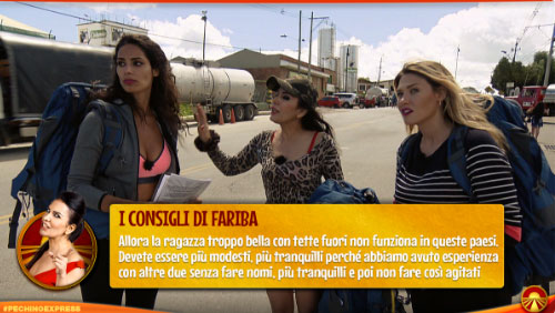21.12 – La prima delle “caravelle” è la “regina indiscussa della quarta stagione di Pechino Express”: Fariba, che viene assegnata alle Naturali. La seconda è “la lingua più tagliente di Pechino Express, una presente ingombrante direttamente dalla terza edizione”: Angelina! Costantino la assegna alla coppia dei Coniugi. La terza è “la madre di tutte le caravelle”: la marchesa d’Aragona, che per esclusione si aggiunge ai Contribuenti.