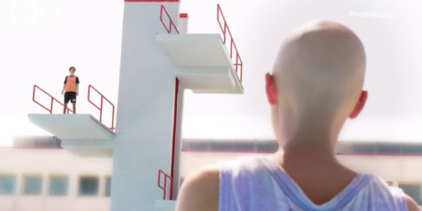 Nina dice a Davide di non aver più paura, e si tuffa dal trampolino della piscina.