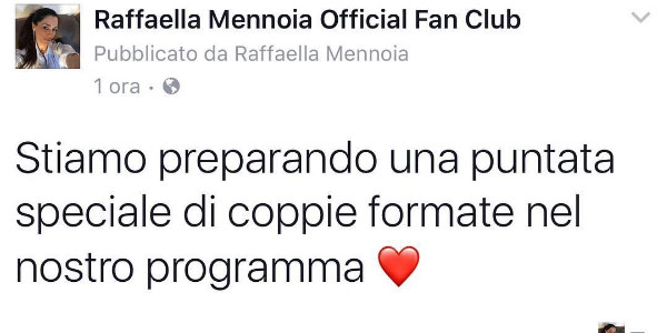 I fan della coppia e degli altri protagonisti sono entrati in fibrillazione quando hanno letto un post di Raffaella Mennoia, una delle autrici della trasmissione che ha scritto: “Stiamo preparando una puntata speciale di coppie formate nel nostro programma”.