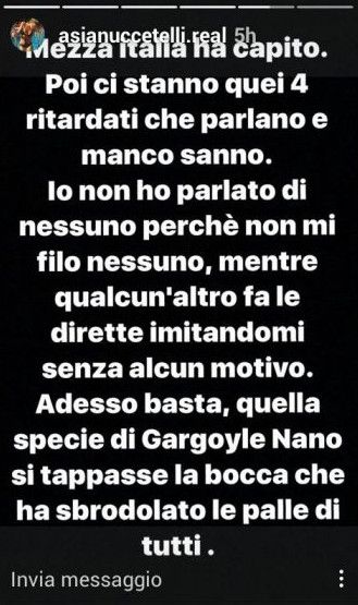 Poche ore dopo Asia ha replicato così: