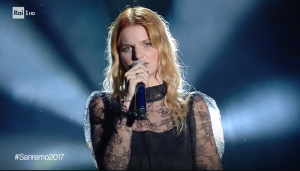 Niente male Chiara Galiazzo, che sale quasi per ultima sul palco dell’Ariston. Un vestito nero, per metà trasparente ma per nulla volgare. Il suo fisico appare più asciutto e il colore scuro le dona molto. Approviamo.