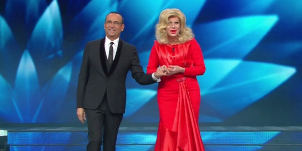 22.58 – “Festeggiamo i 70 anni di carriera di una donna straordinaria, Sandra Milo”, annuncia Carlo Conti. In realtà si tratta di Virginia Raffaele.